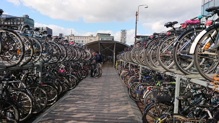 Illalla vielä tavattiin, kun käytiin yhdessä syömässä Niinan ja Sunen kanssa pikku ravintolassa, josta Niina oli varannut pöydän. Kävely ravintolaan vei meidät hämmästyttävää reittiä, jonka varrella oli ja varmasti edelleen on satamäärin polkupyöriä parkissa. Onhan rautatieasema aivan vieressä. Vanhastaan on tiedetty, että tanskalaiset pyöräilevät ja että jalakulkijoiden on parasta pysyä poissa pyöräteiltä, jos haluaa välttyä kiukkuisilta komennoilta ja törmäyksiltä.
